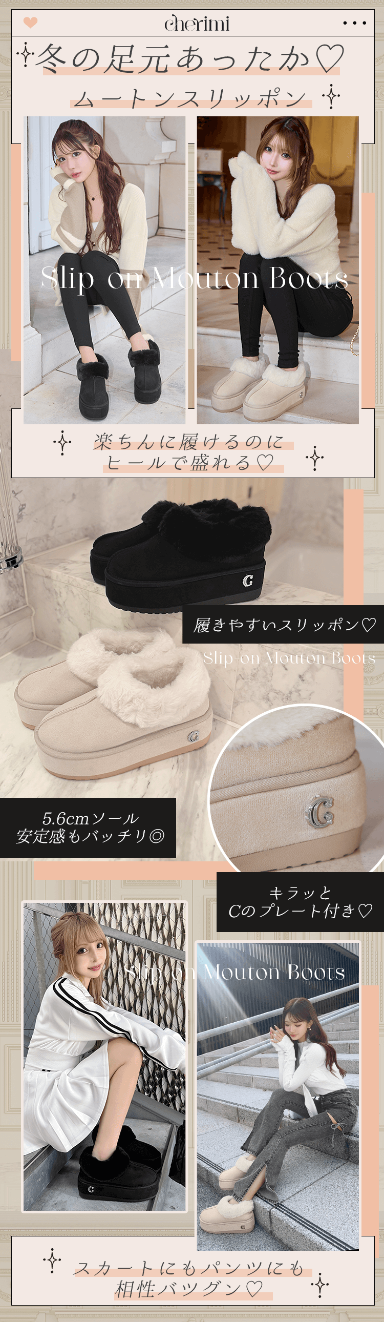秋冬コーデにぴったりなおしゃれ見えムートンスリッポン♡